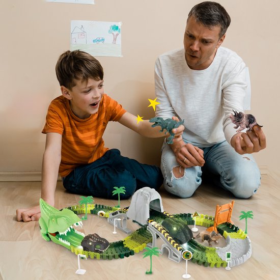 Dinosaurus Speelgoed Racebaan - Inclusief Dinosaurusauto - 120 Onderdelen