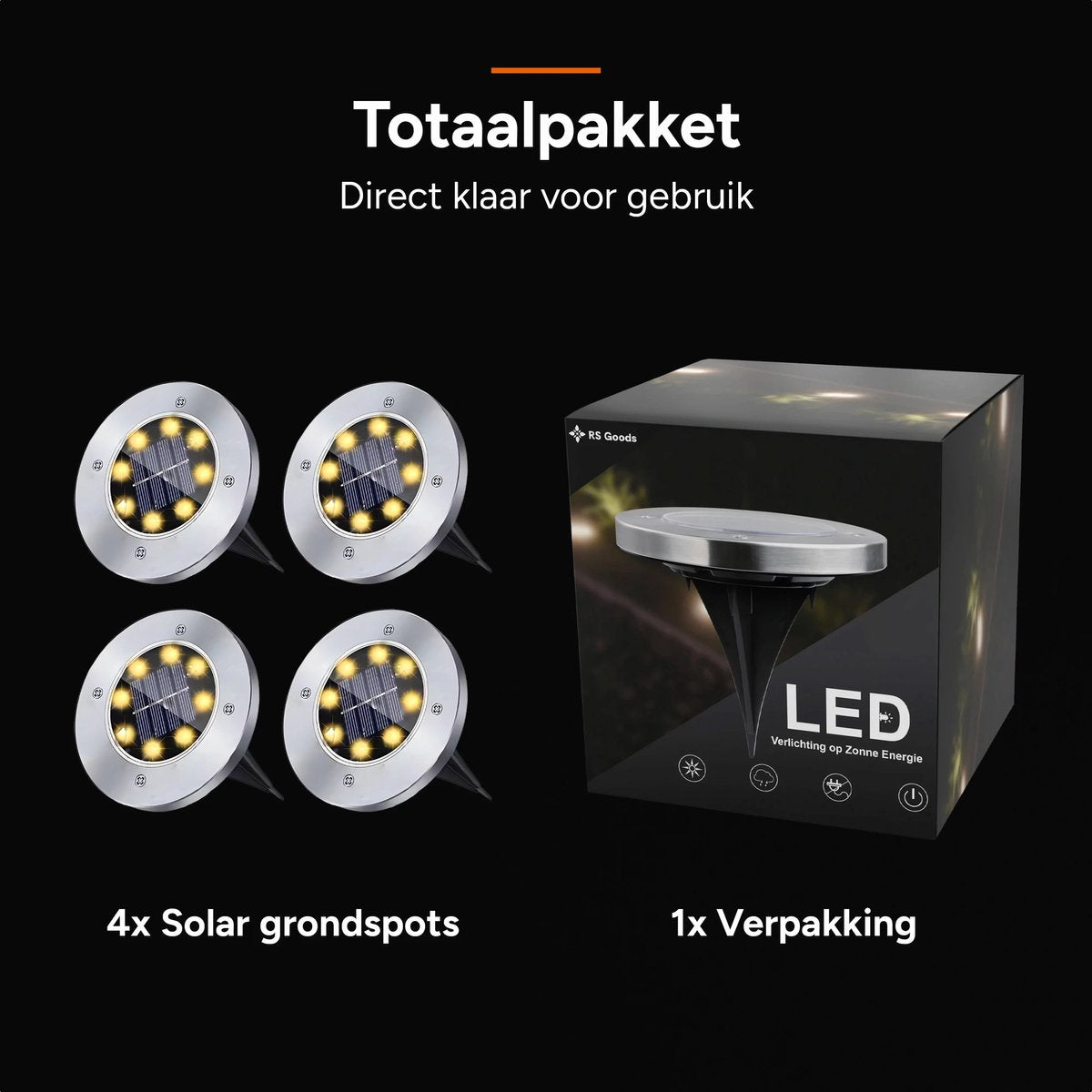Grond Spots op Zonne Energie - 4 Stuks - Solar Tuinverlichting